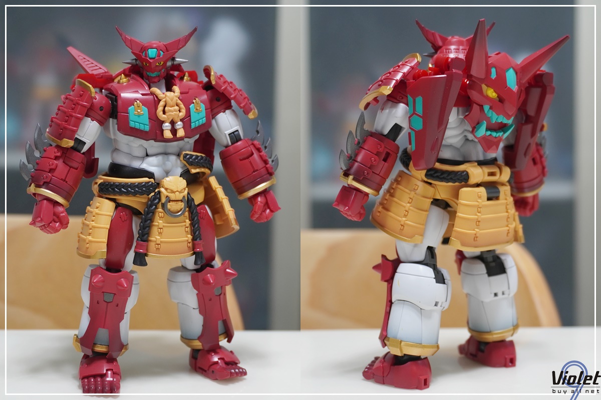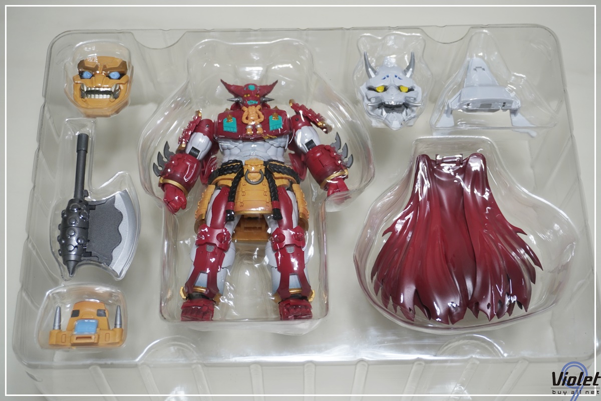구성품. 완전 변형까지는 아니고 일부 파츠를 이용해서 완벽 구현이 됩니다. 이름답게 오니의 형상을 한 마스크가 인상적이네요.