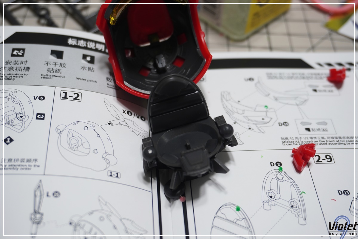 윙파츠. 팬이 회전이 되는데 원활하게 회전을 시킬려면 중앙의 빨간 파츠를 타이트하게 조립하면 안됩니다. 적정선에서 본딩하는게 플레이밸류에 좋습니다.